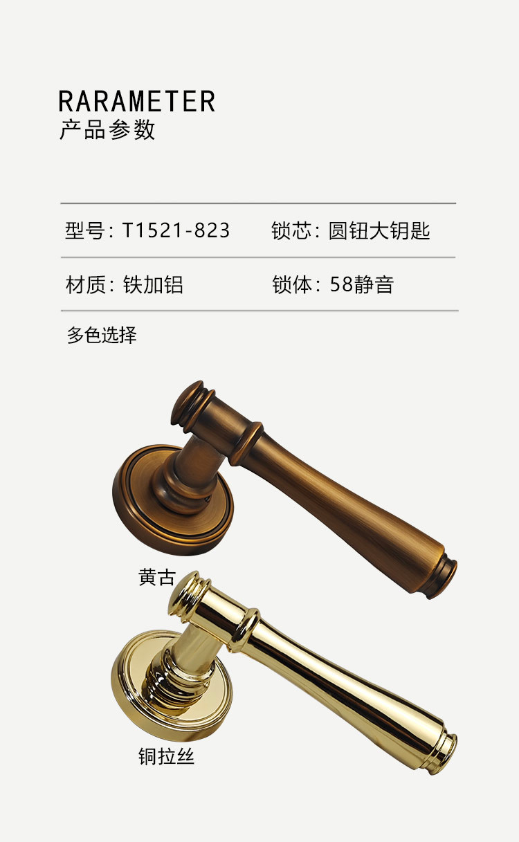 室内门锁卧室分体锁简约木门锁静音磁吸房门锁复古通用含锁把手锁室内门锁卧室分体锁简约木门锁静音磁吸房门锁复古通用含锁把手锁